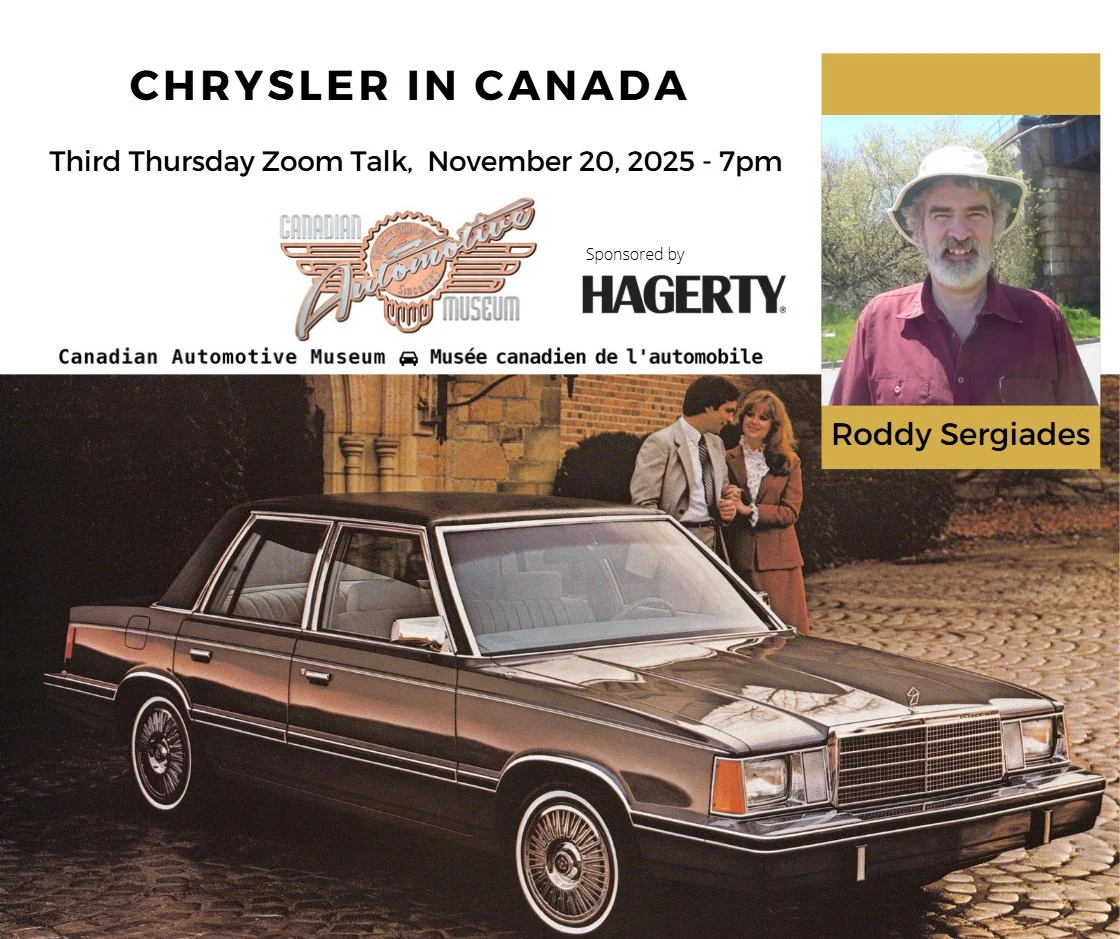 This online talk will take place over Zoom and is part of the Canadian Automotive Museum's Third Thursday lecture series. These online talks are free and open to the public, but registration is required. The Canadian Automotive Museum is a registered Canadian charity and a suggested donation of $10 goes toward covering the cost of hosting these virtual events. Donors who make an annual contribution of over $25 will receive a charitable tax receipt.