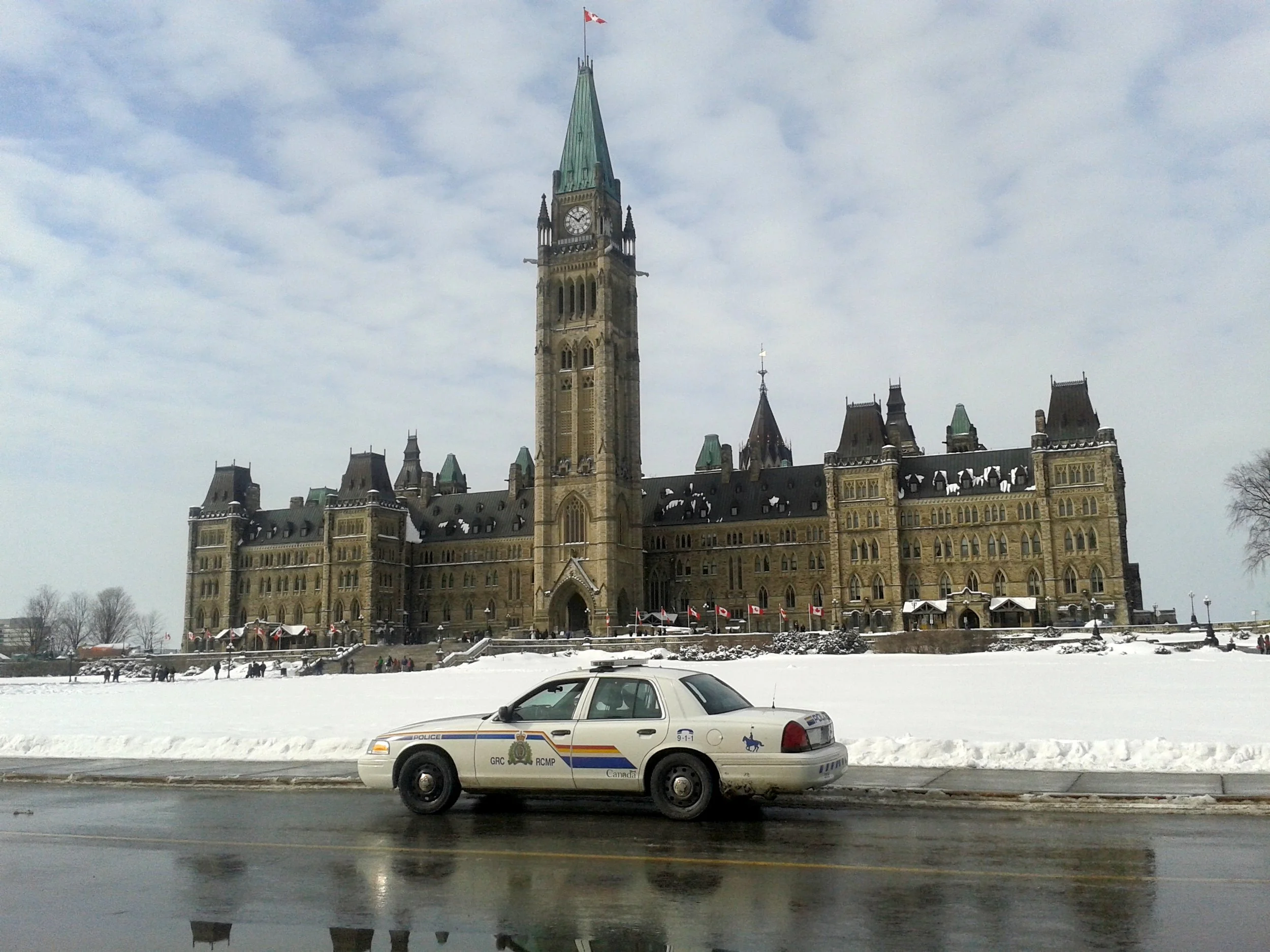 A Royal Canadian Mounted Police (RCMP) Crown Victoria Police Interceptor on Parliament Hill in Ottawa, 2014. Crown Vics remain common police cars across Canada.