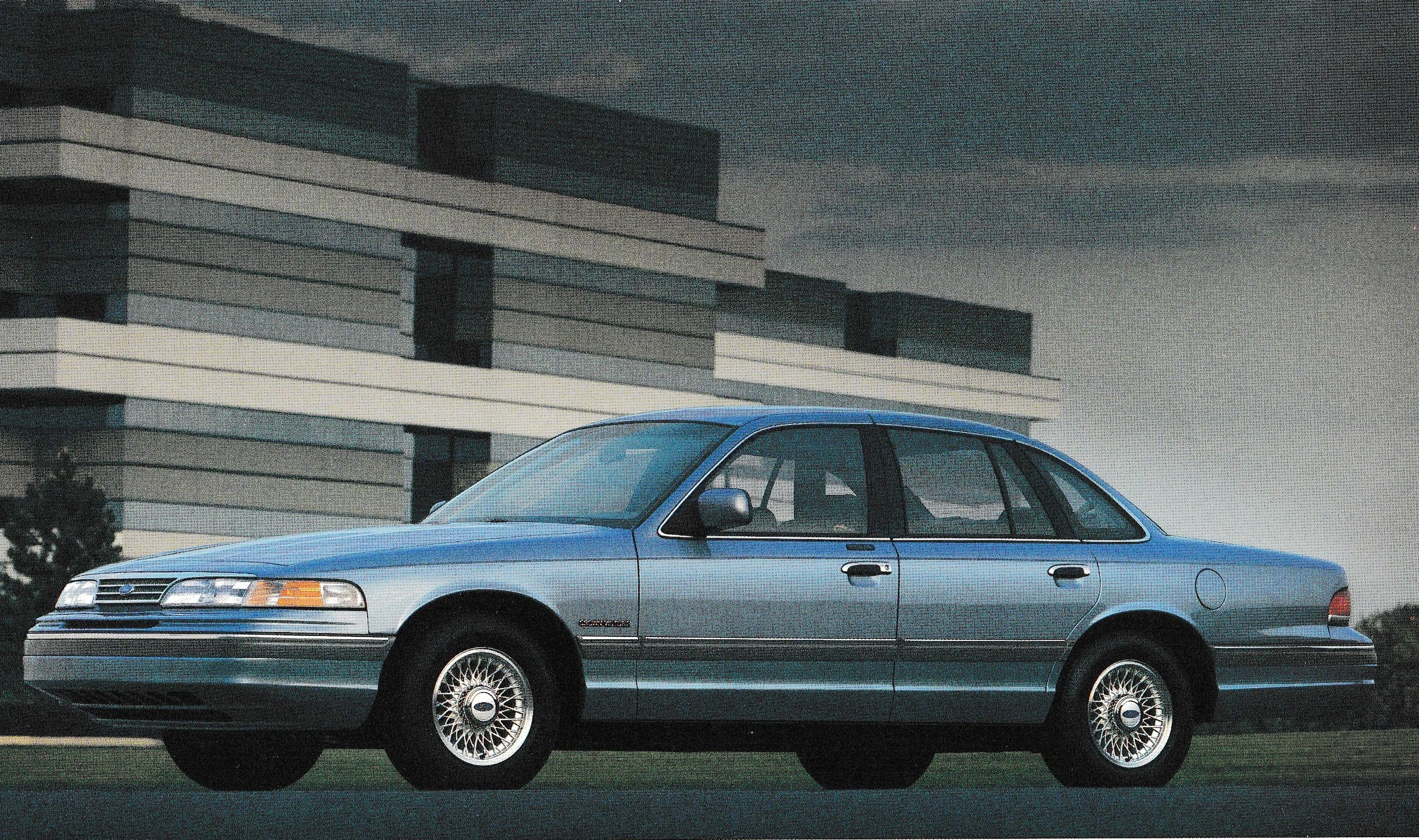 An advertisement for 1994 Crown Victorias. Apart from improved streamlining, the Crown Vic would go through relatively few visual changes in its 30-year production lifespan.